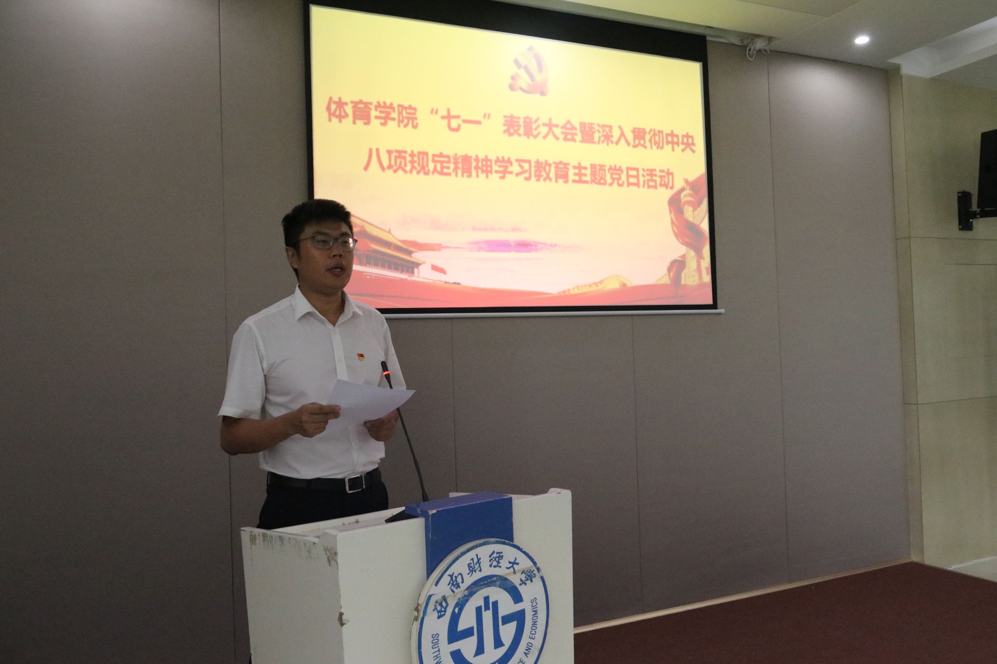 副院长(主持工作)陈丛刊主持大会时指出,全体党员同志要以此为契机,进一步发挥战斗堡垒和先锋模范作用,赓续西财优良传统,潜心立德树人,弘扬体育精神,新百年新征程奋力回答好“强国建设、西财何为”“西财建设、体育何为”的时代命题。
