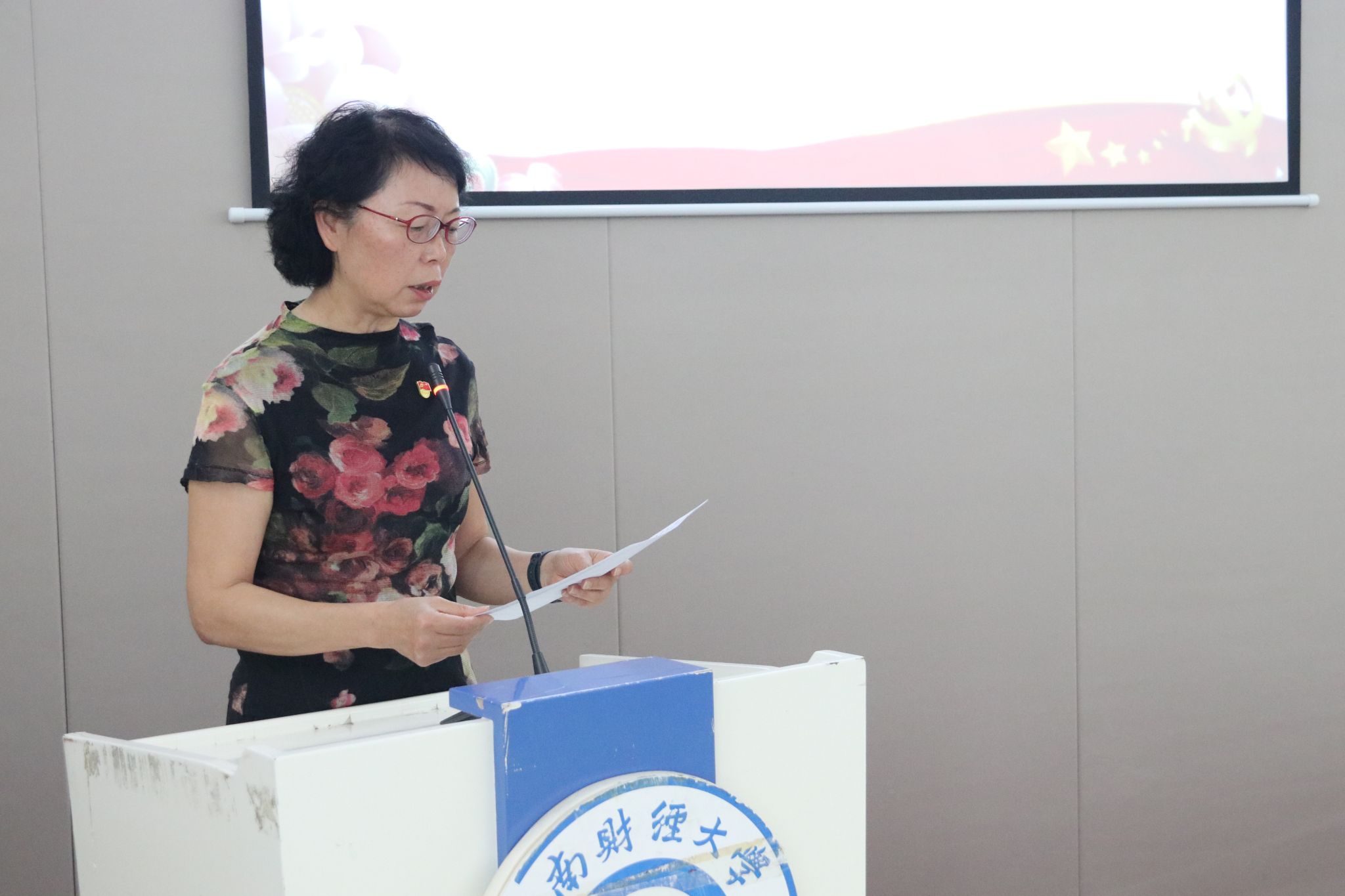 学院党委书记周正宏讲话。他向全体师生党员致以节日问候,向受到表彰的先进集体和优秀个人表示热烈祝贺。他指出,学院党委坚持把开展好深入贯彻中央八项规定精神学习教育作为重大政治任务,一体推进学查改强党性砺作风,持续巩固风清气正的校园政治生态和育人环境。围绕落实学校第十四次党代会四个“一体综合改革”系统部署,周正宏以“四个强化”提出希望和要求,并号召全体党员坚持不懈用习近平新时代中国特色社会主义思想凝心铸魂,锤炼过硬作风,勇担强国建设使命重任,为鲜红党旗增光添彩,为百年西财再立新功。