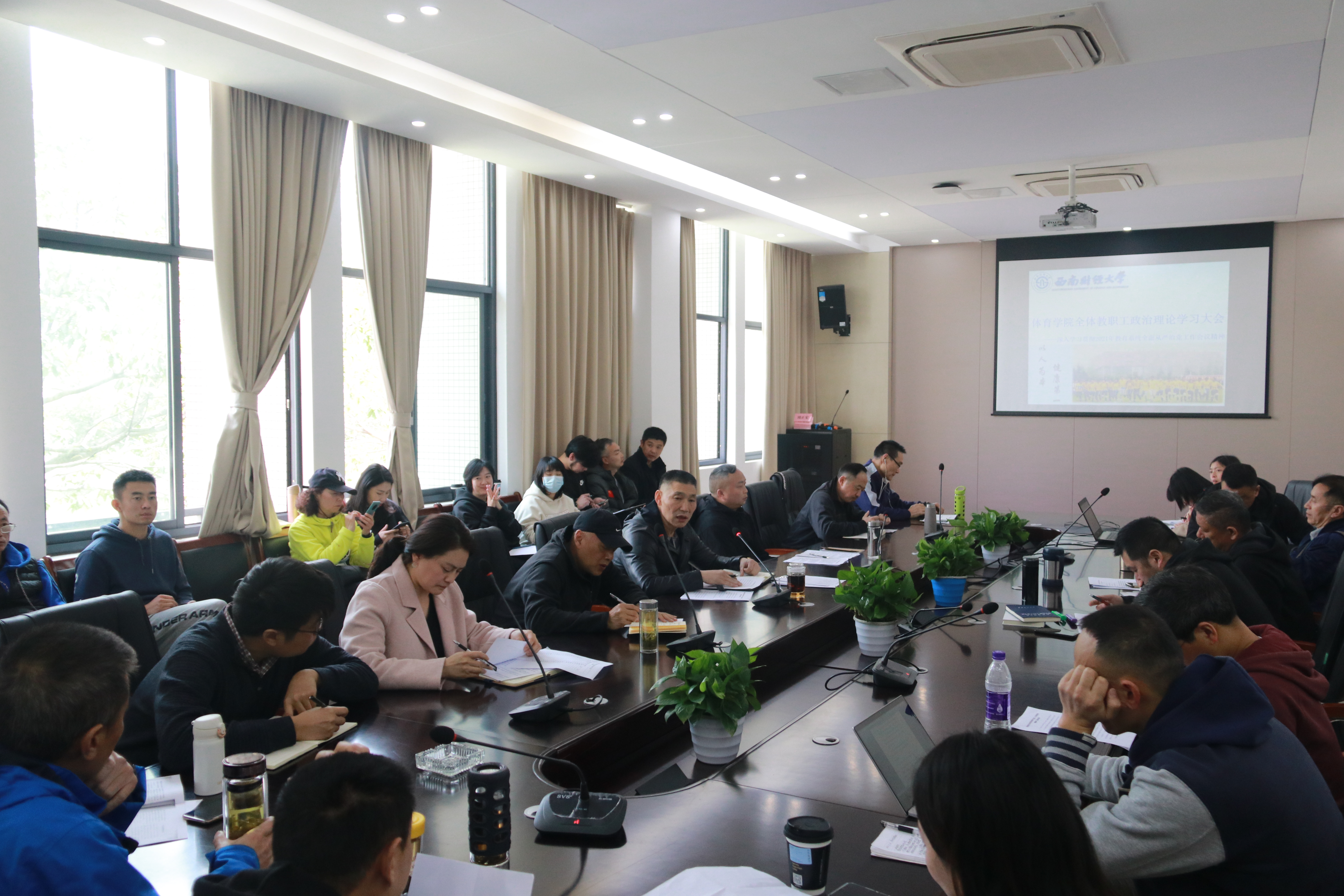 3月23日,中欧网页版在游泳池201会议室召开全体教职工政治理论学习会。学院领导班子和全体教职工参加学习,会议由杨远波院长主持。