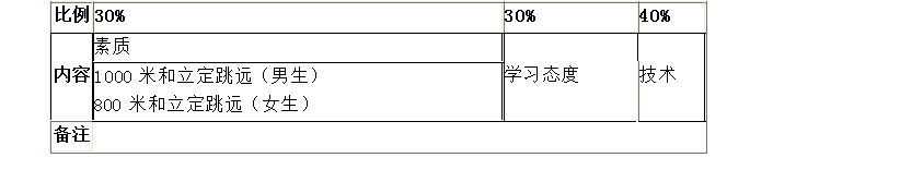(2)技术部分。由各任课教师进行技术评定和身体素质达标考核。