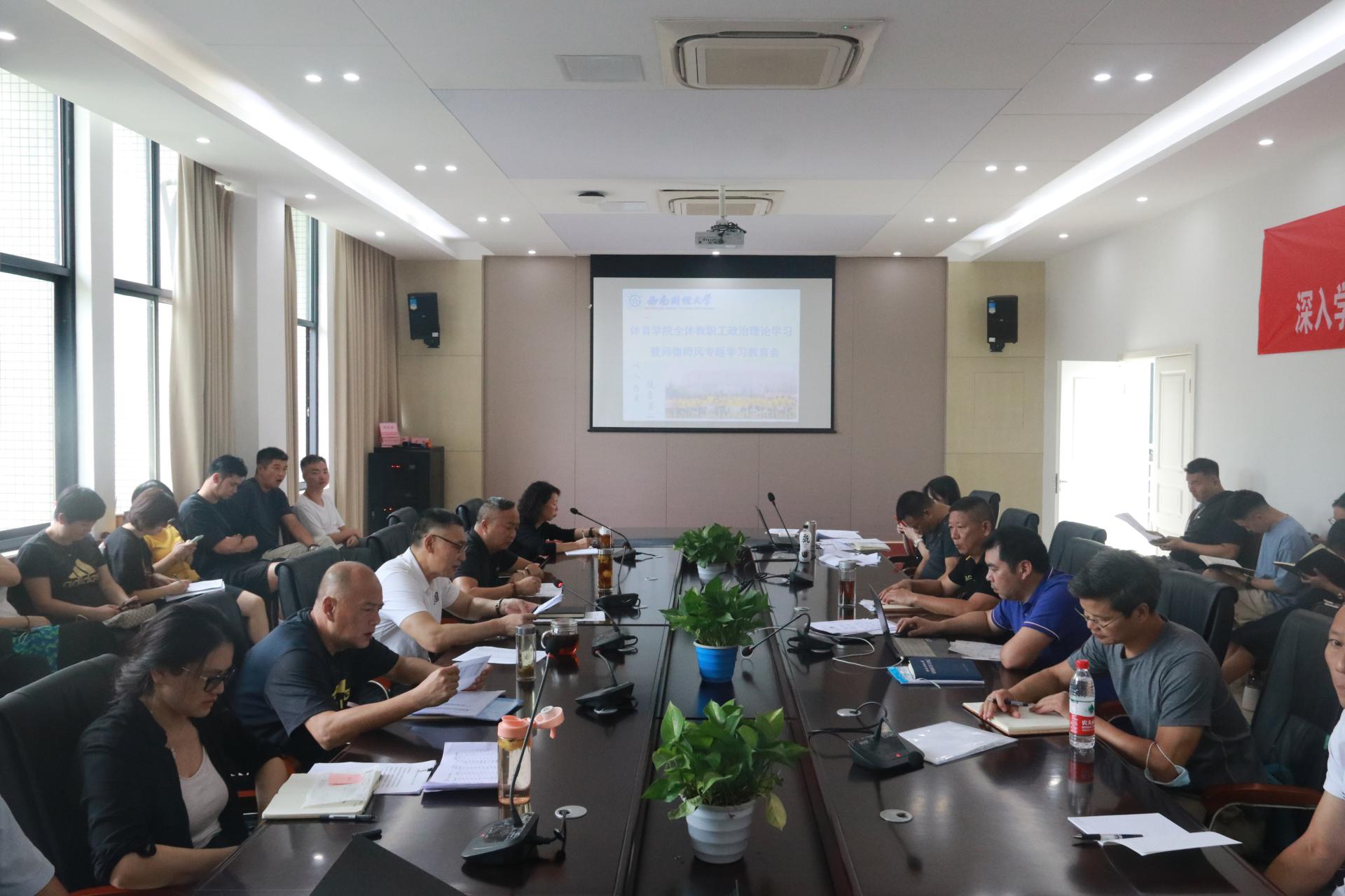 9月7日,中欧网页版在游泳池201会议室召开全体教职工政治理论学习会,开展师德师风专题学习,学院全体教职工参加,会议由杨远波院长主持。