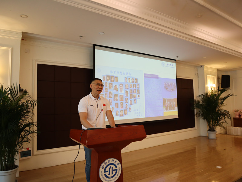 院长兼直属党支部书记杨远波代表学院对荣休的白耀东、余兰老师表示衷心的感谢并致以良好的祝愿,向新入职的年轻教师表示热烈欢迎。杨院长表示:老教师荣休、新教师入职典礼作为学院师德师风建设的一项重要内容,目的是赓续百年初心,担当育人使命,让红色血脉生生不息、让西财体育精神代代相传。白老师、余老师见证了西南财经大学的发展,他们三十年如一日与学院同荣辱、共成长,默默奉献、朴实无华、不求名利,为学院乃至学校的发展付出了毕生的心血、作出了重要的贡献。希望老教师们保重身体、发挥余热,为学院献言献策,一如既往支持学院发展。杨院长还对新入职的年轻教师提出了希望:希望他们坚持教书和育人相统一、坚持言传与身教相统一、坚持潜心问道和关注社会相统一、坚持学术自由和学术规范相统一,将立德树人贯穿于教书育人全方位全过程,争做“四有好老师”和新时代“大先生”,做好“四个引路人”。牢记为党育人、为国育才使命, 忠于教育事业,履行教师职责,弘扬财经文明,培育华夏栋梁,为培养德智体美劳全面发展的社会主义建设者和接班人作出新的更大贡献,为把学校建设成为财经特色鲜明的世界一流大学贡献自己的力量。