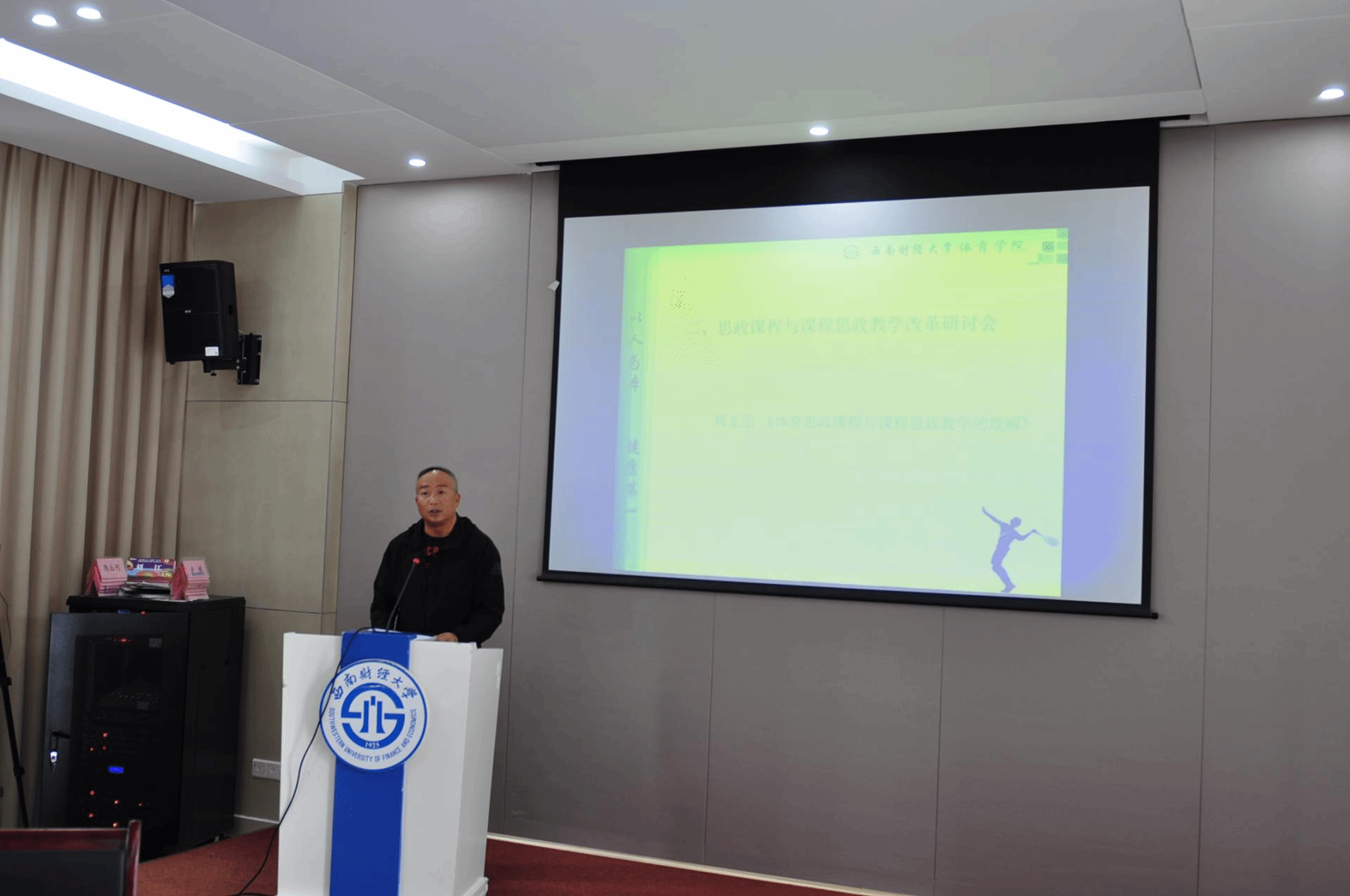 会议第二阶段,会议进行中欧网页版全体教职工思政课程与课程思政教学改革研讨会。学院教师代表毛艳、邓茜、简家俊教师以《体育类课程思政心得体会》《课程思政的积累、挖掘和提升》、《足球公体课实施课程思政的着力方向》为题目围绕课程思政如何在高校中欧(中国)工作展开这一核心分享了自己的看法。学院党委书记周正宏以《体育思政课程与课程思政教学的一些理解》为题向与会教师强调了高校的体育课程与思政教育的理念相结合,是功在当代、利在千秋的德政工程。