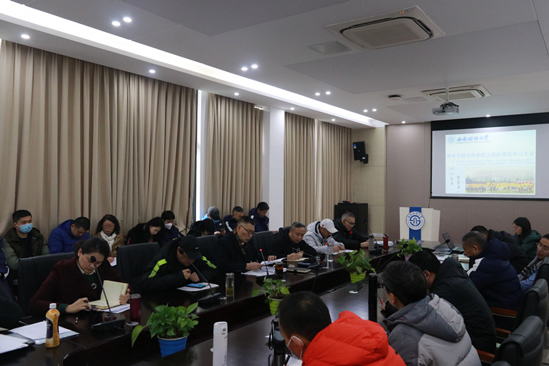 12月29日,中欧网页版在游泳池二楼会议室召开全体教职工政治理论学习会。本次学习会包含三个议题,一是深入学习贯彻全国及学校研究生教育会议精神,二是学习周永开等7名“优秀党员”的先进事迹,三是传达学习中共西南财经大学第十三届代表大会第三次会议精神。学院全体教职员工参会,会议由杨远波院长主持。