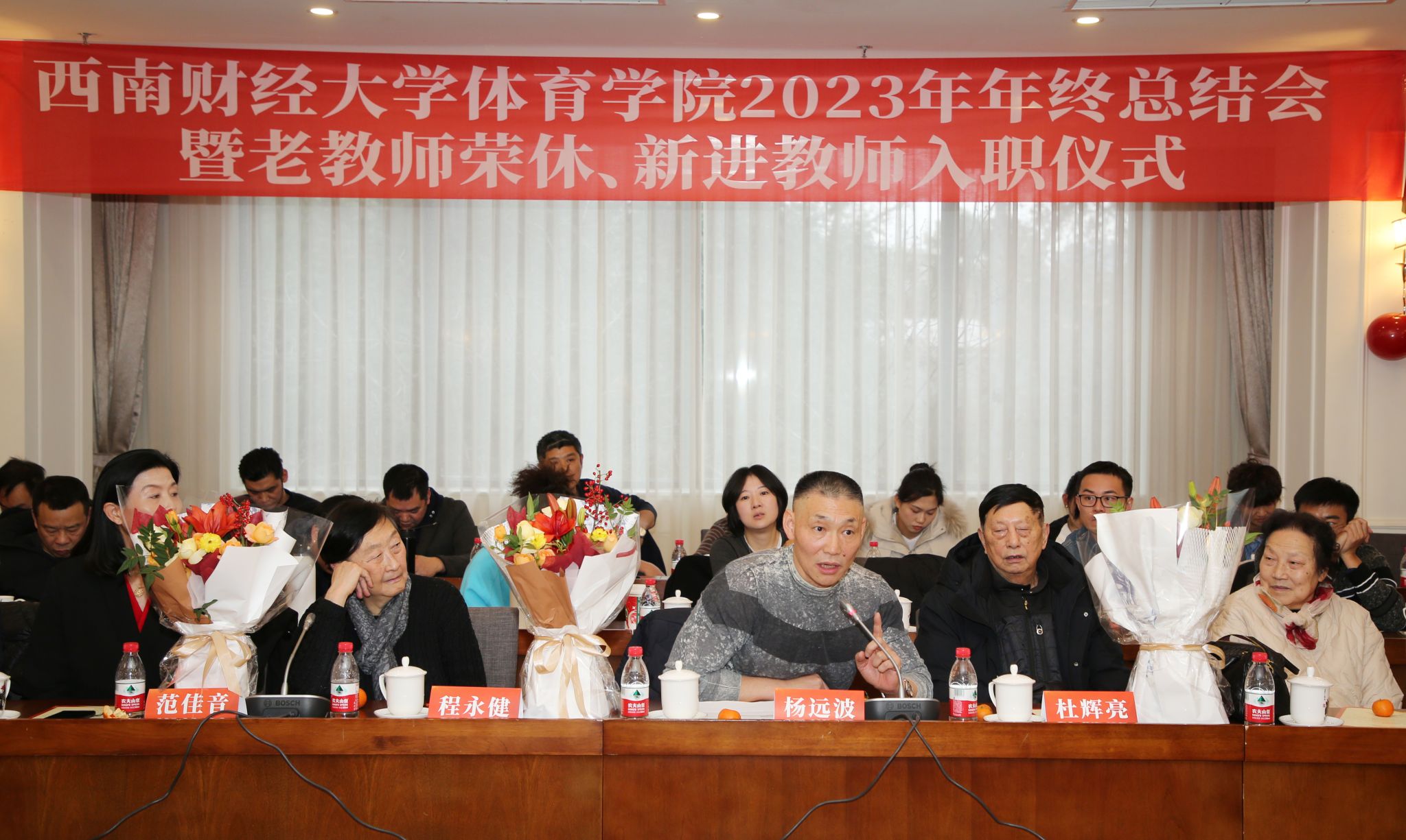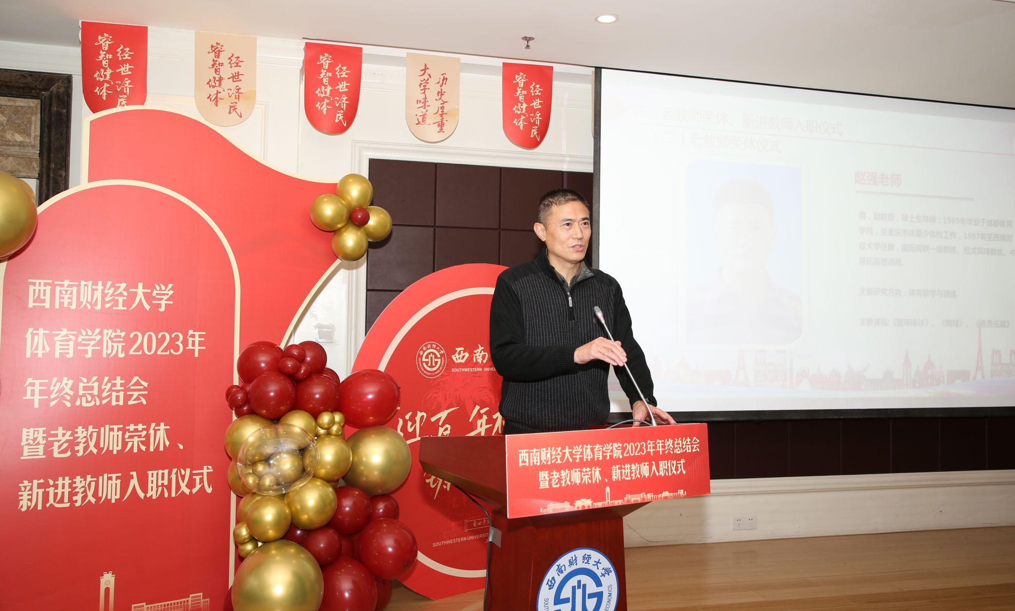 杨远波代表学院向荣休的张堰玲、赵强两位教师表示衷心的感谢并致以良好的祝愿,向新入职的青年教师表示热烈的欢迎。他指出,老教师荣休、新教师入职仪式作为学院师德师风建设的一项重要内容,目的是赓续百年初心,担当育人使命,让红色血脉生生不息、让“睿智健体、经世济民”的西财体育人文精神代代相传。张堰玲、赵强见证了中欧网页版的发展,他们四十年如一日与学院同荣辱、共成长,默默奉献、朴实无华、不求名利,为学院和学校的发展付出了毕生心血、作出了重要贡献。希望老教师们保重身体,一如既往支持学院发展。同时,他对新入职的教师提出希望:坚持“四个相统一”,将立德树人贯穿教书育人全方位全过程,争做“四有好老师”和新时代“大先生”,牢记为党育人、为国育才使命,为培养德智体美劳全面发展的社会主义建设者和接班人作出新的更大贡献。当前,正值全校上下喜迎百年校庆之际,从黄浦、光华、柳林的薪火相传中,汲取西财体育发展的力量,做好冲刺之年学院迎百年校庆的相关筹备工作,是每一位西财体育人光荣的使命和责任,我们一定要凝心聚力、同心筑梦,为学校百年华诞绘就丰富多彩的体育画卷。
