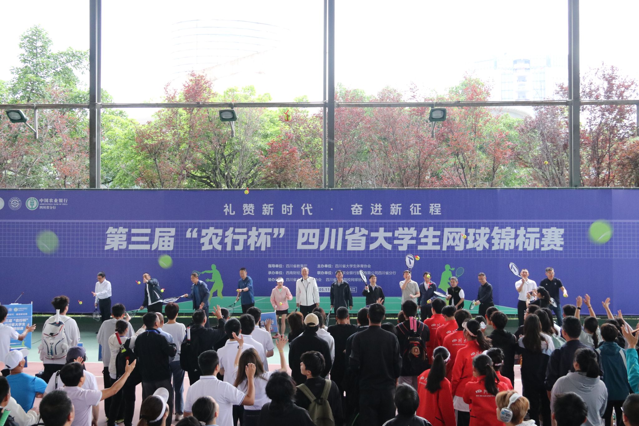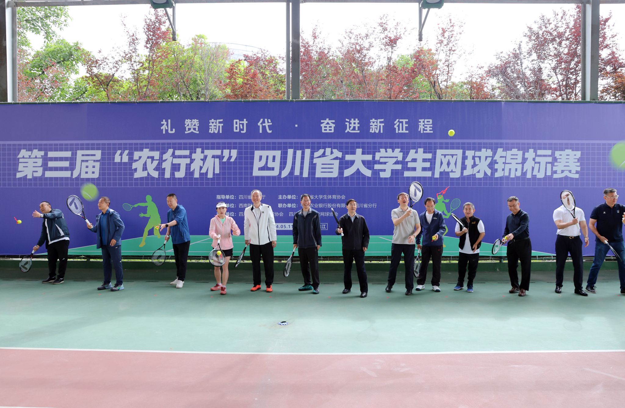 四川省教育厅副厅长石静,四川省大学生体育协会总顾问、四川省大学生网球协会主席刘青,四川省高等院校网球协会主席赖廷谦,四川省网球协会副主席、新华社四川分社原社长刘欣欣,中国农业银行股份有限公司四川省分行党委委员、副行长兼成都分行党委书记、行长王屹,中国农业银行股份有限公司四川省分行高级专家兼成都分行党委委员、副行长朱波,成都市网球协会副主席贺杰,四川省大学生体育协会会长、学校中欧网页版院长杨远波,四川省大学生体育协会秘书长、西南交通大学中欧网页版院长刘江出席开幕式,并为比赛开球。