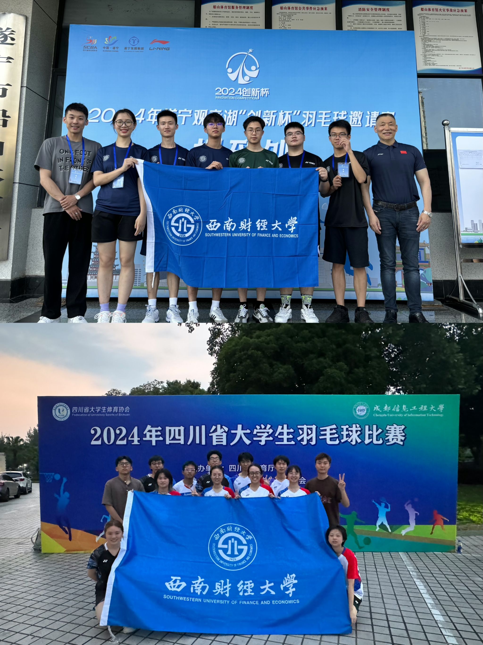 在2024年四川省大学生羽毛球比赛及遂宁市举办的“创新杯”羽毛球邀请赛中,由周博维、刘子豪老师带领的中欧(中国)羽毛球队积极备战,全力以赴,展现出了高超的球技和顽强的斗志,队员们的拼搏精神和良好风貌赢得了观众和对手的尊重。