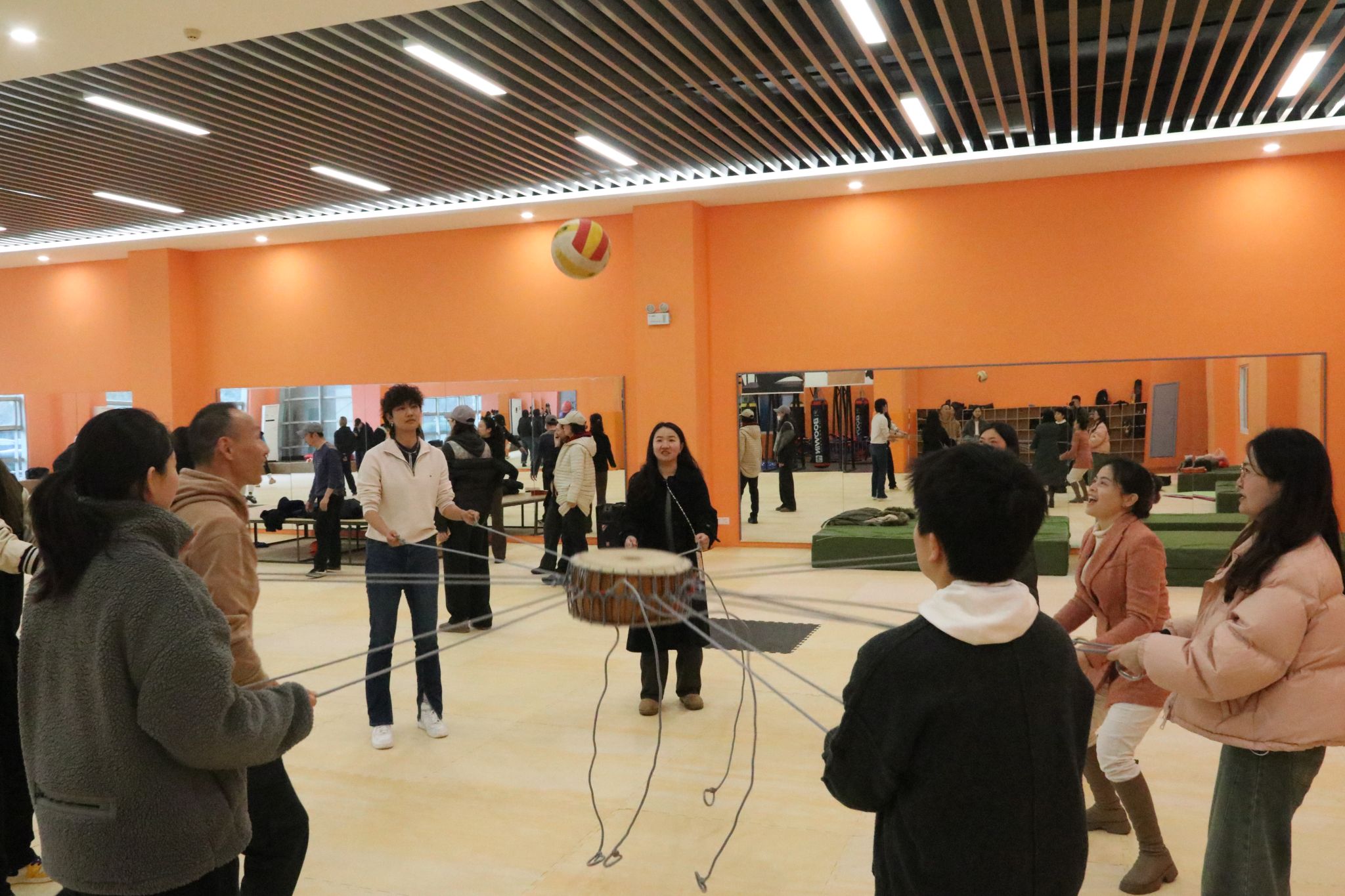 第二个项目是“踢毽子”,寓意着——实干担当传承百年西财精神。女教职工们围成两个圆圈“踢着毽子、传着精神”。院领导主动加入其中,不仅体现着学院对女教职工们的关心关爱,也传递着“强国建设 西财担当 西财体育担当”的精神。