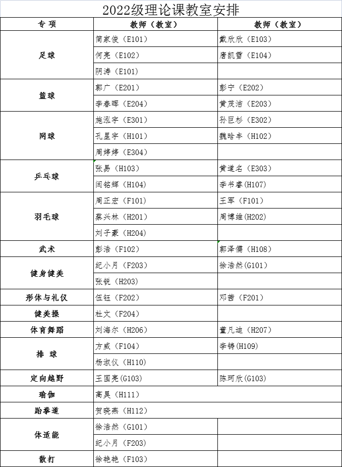 各学院: 经教务处同意,本学期2022级本科生第1周体育课为中欧(中国)理论课,9月18日起恢复户外教学。根据教室资源状况,现将理论课具体安排通知如下: