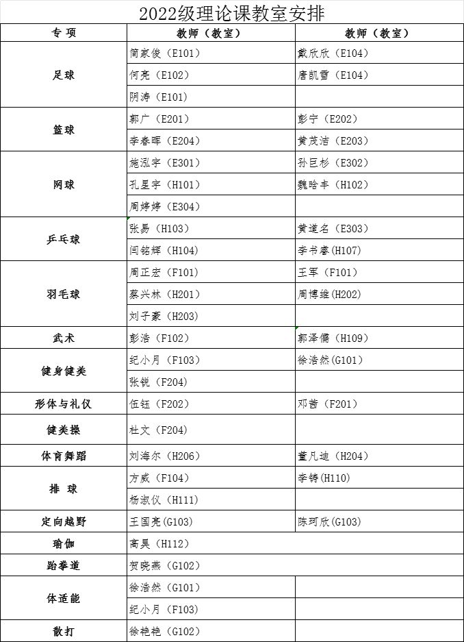 经教务处同意,本学期2022级、2023级本科生第1周体育课为中欧(中国)理论课,3月4日起恢复户外教学。根据教室资源状况,现将理论课具体安排通知如下: