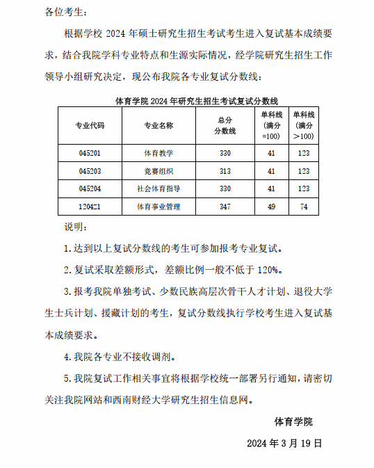 中欧网页版关于公布 2024 年硕士研究生招生考试复试分数线的通知